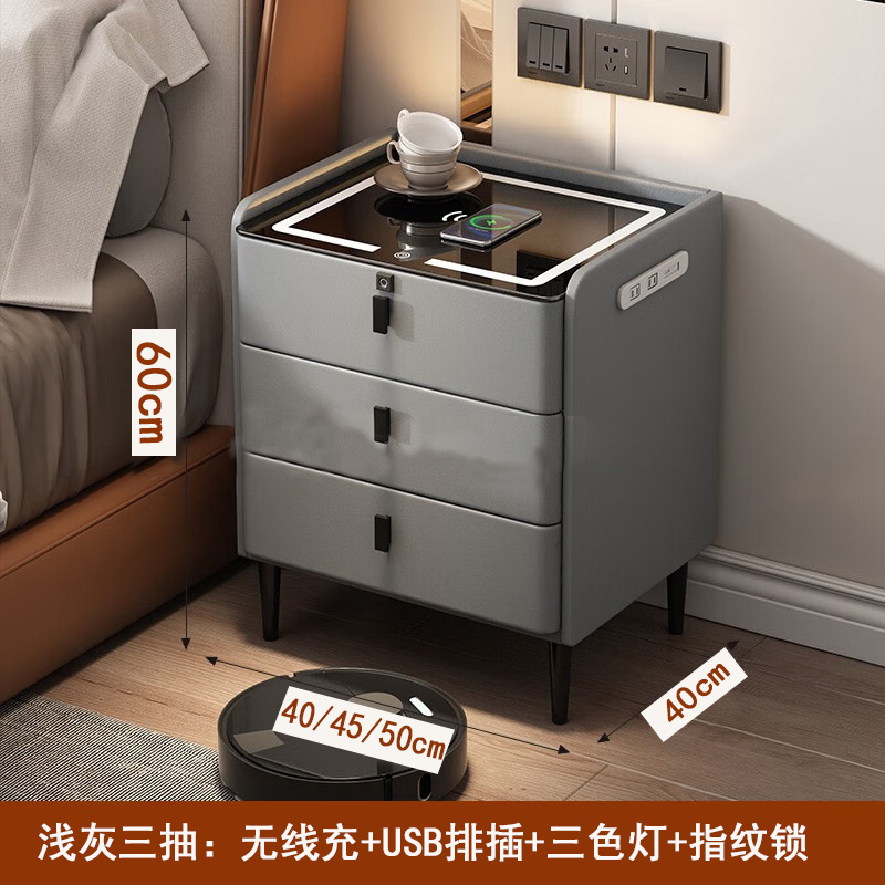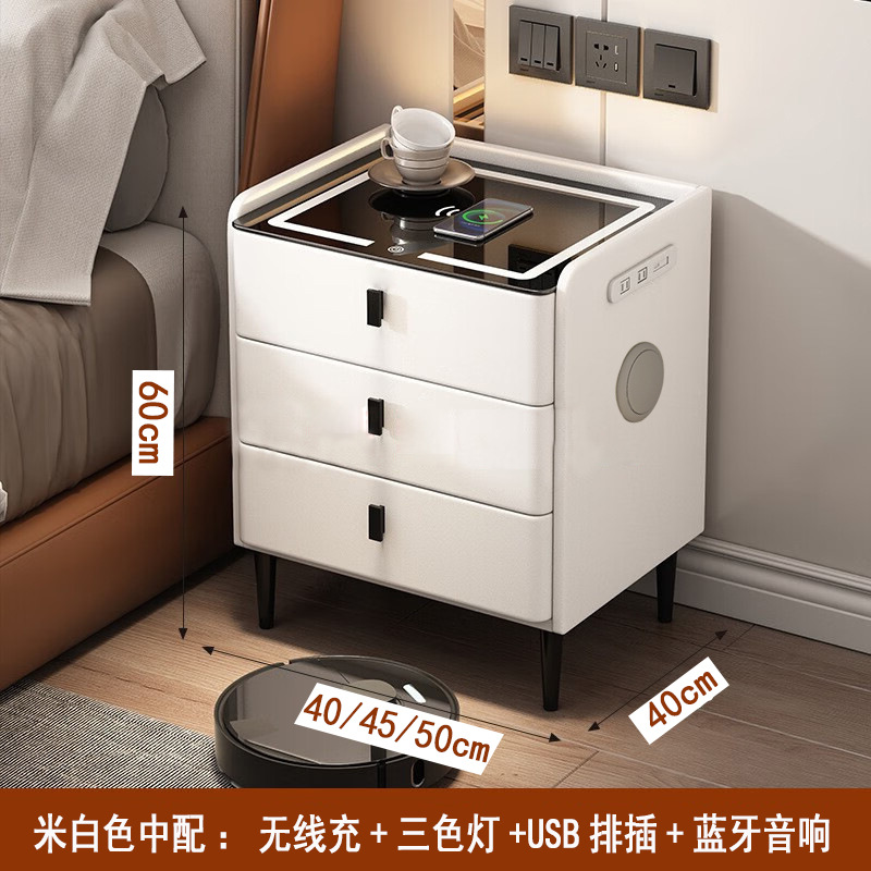 Smart bedside table, multi-functional solid wood wireless charging speaker, fingerprint lock, modern bedroom bedside storage cabinet