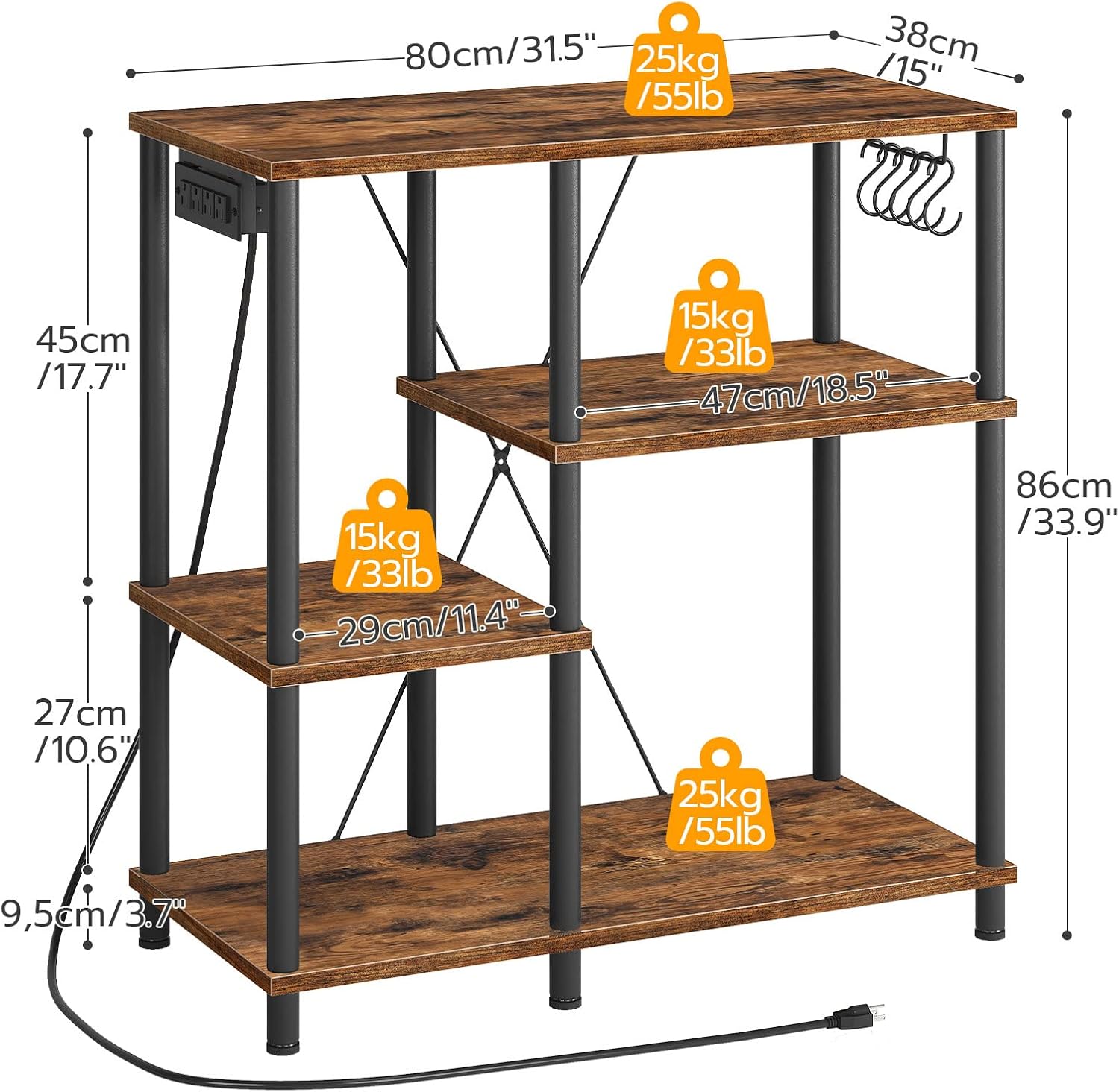 • Baker’s Rack with Power Outlet: This bakers storage rack has 4 AC outlets. It is hassle free to move the heavy microwave oven, air fryer, blender and coffee maker, because this kitchen storage bakers rack allows them to find their own places, and you find a stage to show your cooking skills