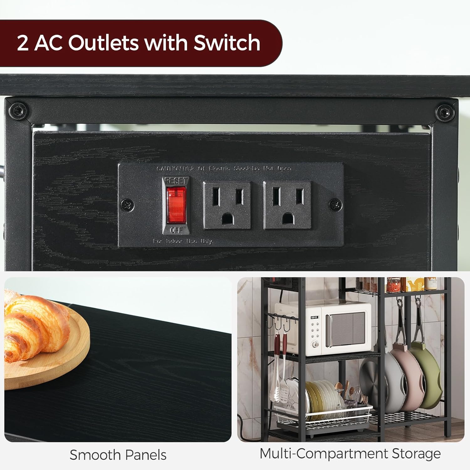 Safe Power Strip: The bakers rack features a built-in power outlet, installable on the left or right side, with 2 AC outlets and a 4.9-foot power cord to power microwaves, coffee makers, and more. A switch enables easy circuit disconnection when not in use, ensuring safety