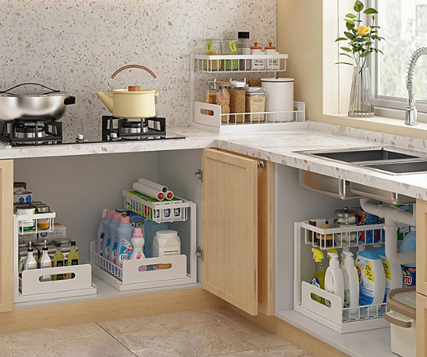 Kitchen storage rack, sink rack, non-drilling countertop layer pull-out storage rack
